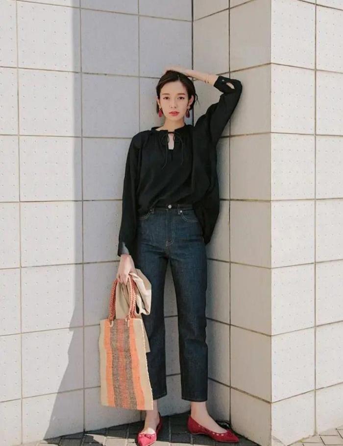不喜欢花里胡哨的穿搭方式,成熟女性可以多多运用黑色的服装,可以是T恤,可以是各种各样的衬衫。