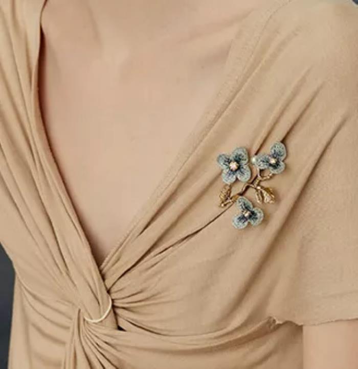 用手工刺绣呈现出来的丁香花,佩戴在胸前,素净清雅,有一种与世无争的感觉。