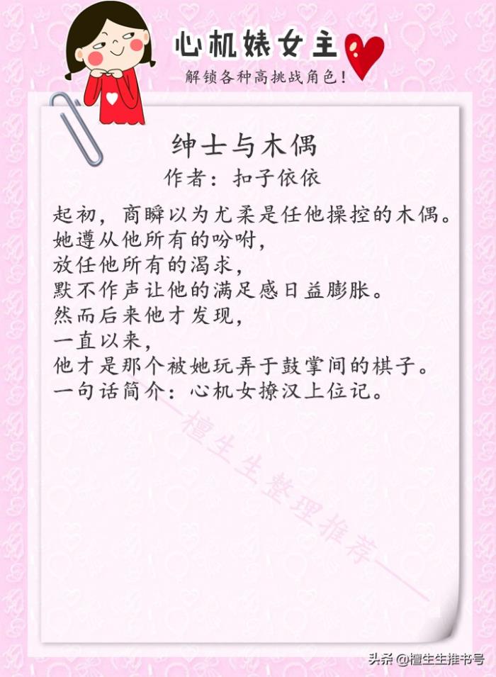 亲们,今天来推一波女主智商在线耍心机,把有权有势的男人玩弄于股掌之间的言情小说。