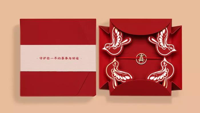 礼盒打开方式很惊艳,你会看到两对喜鹊比翼双飞,这寓意有多妙就不用多说了吧。