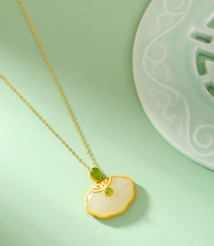 首先要给大家分享的是和田玉吊坠,这是一个长命锁的造型。它更适合送给刚出生的宝宝,长命锁代表了长辈对于晚辈的一种美好的寓意。这款长命锁的造型非常的精致,体积还非常的小巧,一个小小的长命锁,是一种美好的祝愿。S925的银链条,看起来非常的大方。如果是小孩子佩戴的话,同样非常的舒适。即使接触到小孩子稚嫩的肌肤,也不会出现过敏的情况。这款长命锁的造型比较简约大方,不仅仅是在孩子小的时候佩戴,还可以陪伴孩子的健康成长。