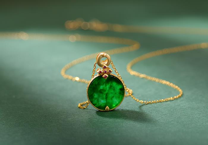 玉和祥满绿缅甸天然A货翡翠冰种18K金链子平安扣吊坠锁骨链项链女士款送女生礼物送礼佳品礼盒