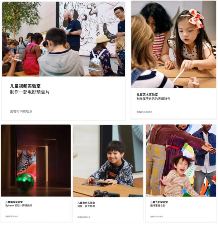 如果你住的地方附近有苹果官方体验店,可以带孩子去参加一些室内课程,目前苹果有专门为儿童准备的音乐、视频、设计、编程等实验室,教给孩子用 iPad 学习入门不同的技能,感兴趣和有条件的家长可以到苹果官网了解。