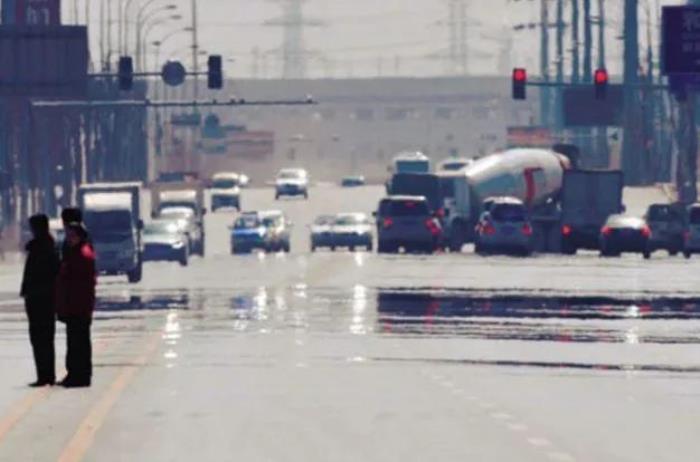 这是一种经常发生的光学现象,多发生在海面以及沙漠之中,在日常生活中最常见的就是在高温天气下的马路上,地面吸收太阳光温度升高,靠近地面的大气受热膨胀,当光线穿过会发生折射以及全反射的现象,最终可能会在马路之上看到虚景。