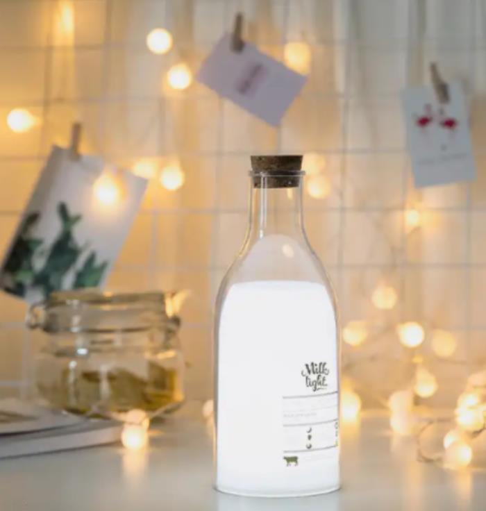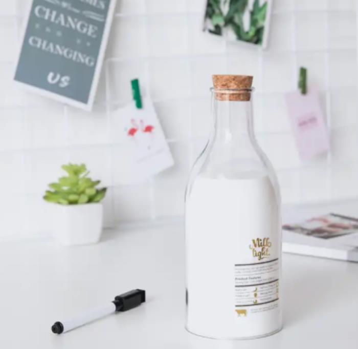 乳白色的牛奶瓶会发出暖人的光,用可擦拭记号笔在瓶身或者瓶子内胆DIY你想对闺蜜说的话,送她恰到好处的温柔。