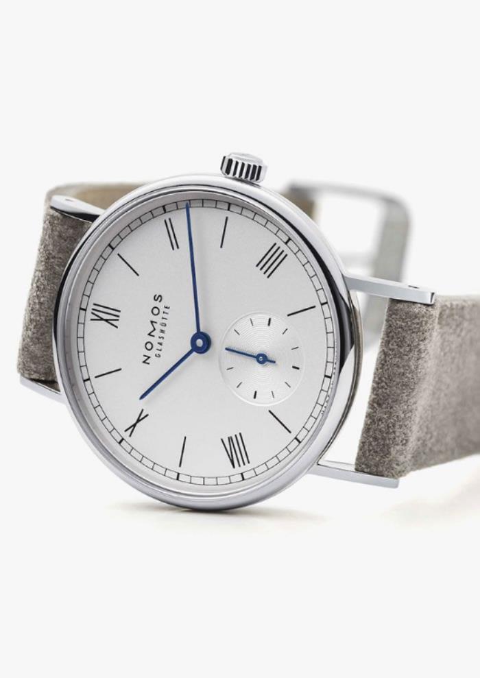 Nomos这款长3,300万的女士手表,表盘干净,指针纤细,保持了品牌的简约基因完整性。六点钟的小秒针使镀银表盘具有视觉平衡。手动上链机芯为手表(Nomos Alpha)的功能提供动力,内置可提供43小时的惊人动力储存。清晰的底盖让您欣赏腕表的内部构造。浅色丝绒皮革表带与白色表盘和精致的蓝色指针完美搭配,构成了手表的外观。这种神圣而精致的机械装置使极简主义者的梦想成真。