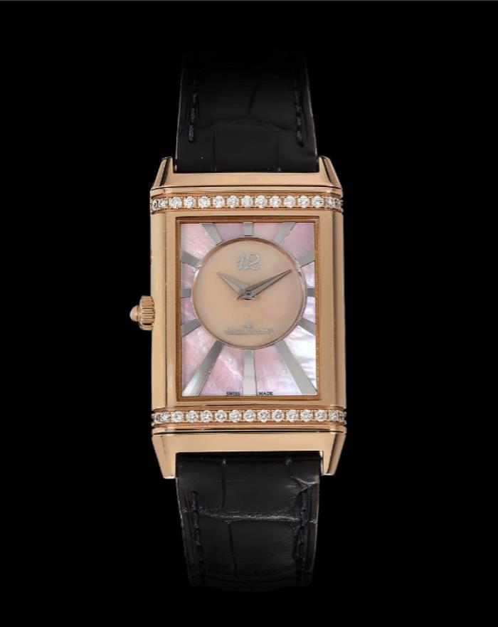 积家(Jaeger-LeCoultre)Grand Reverso绝对是此单上最有趣和历史悠久的腕表,是该品牌标志性Reverso系列的一部分。这些手表诞生于1930年代,原本可以承受在印度服务的英国军官之间马球比赛。可以通过翻转表壳(因此得名)来巧妙地隐藏表盘,以显示耐用的后盖。这样可以保护主拨盘免受刮擦和破裂(如果您正在打马球,则可以敲击槌)。如今,该品牌的Reverso手表的表面下方隐藏了第二个表盘。对于选择购买此表的女士来说,这是个好消息,因为您只需花1份钱就能买到两块非常漂亮的手表。此特定版本的主要表盘由银制成,并具有扭索饰纹饰面,使其具有可爱的阳光图案。第二个表盘更令人惊叹,它由粉红色的珍珠母制成,具有有趣的银色镶嵌设计,以及镶有钻石的表圈。这款表的表壳由18克拉玫瑰金制成。机芯内部是积家的手动上链机芯864A,该机芯配备19颗珠宝,以21,600vph的速度跳动,并具有42小时的动力储存。黑色磨砂鳄鱼皮表带为原本优雅的时计增添了精致感。