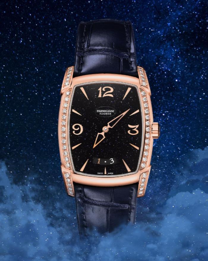 在晴朗的夜晚,没有什么比空旷的星空更美丽。帕玛强尼(Parmigiani Fleurier)的《卡尔帕·卡尔帕里斯玛议程》向银河大自然最神圣的视觉效果致敬,这是Parmigiani的首款女性机械手表。表盘让人联想到夜空,它使用了带有铜夹杂物的东陵玻璃。PF331自动上链机芯为这款极为出色的时计提供动力,可提供55小时的惊人动力储存。机芯只有3.5毫米厚,以4Hz振动,并饰有日内瓦波纹。您可以通过手表的展览底盖凝视这种能力。这款耐用可靠的机芯装在37.5毫米x 31.2毫米18克拉玫瑰金表壳中,表圈和表耳均饰有钻石。鳄鱼皮爱马仕表带的颜色让人联想起暮色的天空,呈靛蓝色,并与闪闪发光的表盘完美搭配。