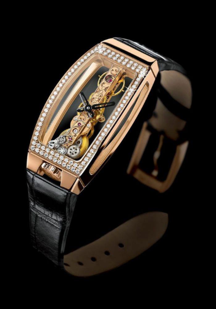 钟表真正的爱好者和应该是一位精雕细琢的手表,标志性的真正欣赏者是昆仑小姐 Balance和 AWES。这款无与伦比的镂空腕表由非常规的CO 113手动上链机芯提供动力,该机芯以4Hz的频率震动。它是当今市场上唯一的法式长棍面包机,因此备受赞誉。这款机芯的动力装置装在坚固的18克拉玫瑰金表壳中,尺寸为21.3毫米x 43.9毫米,散发着奢华和金色的精致。醒目的镂空表盘覆盖有双层防反射蓝宝石水晶。黑色鳄鱼皮表带看起来很有品味,并完美展现了这款卓越时计的奢华魅力。