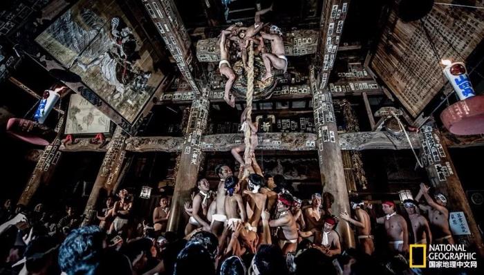 日本 | 在福岛的佛寺,男人们全身赤裸,只缠了一条腰布。他们要先在冷水里清洗身体,再顺着绳子爬到屋顶,祈祷健康。2011年,这里发生了地震海啸,目前仍在恢复中。