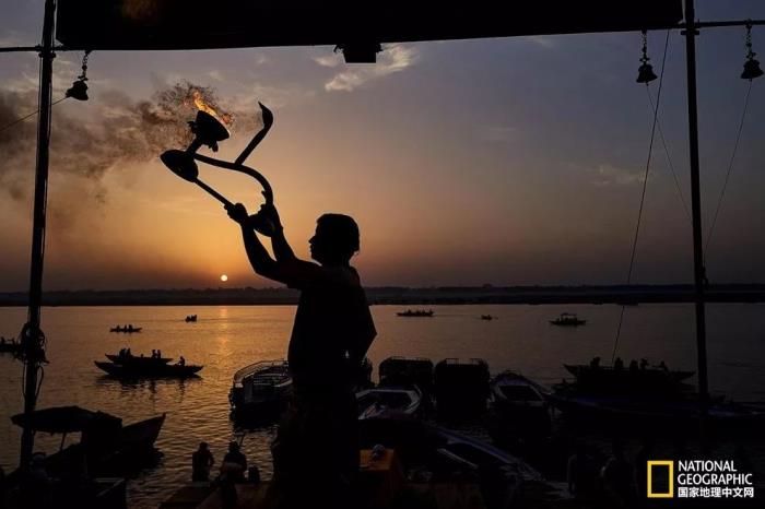 印度 | 每天傍晚,瓦拉纳西的居民都会上演恒河暮祭,这一仪式是为了赞美恒河。每个印度人这一生至少要来朝圣一次。