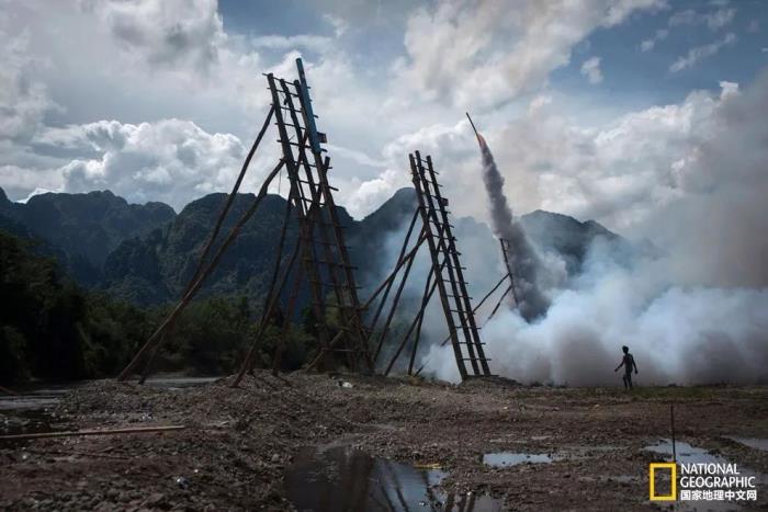 老挝 | 在万荣的芒飞节上,人们正在举行一场自制的火箭比赛,以此来求雨并开始雨季。