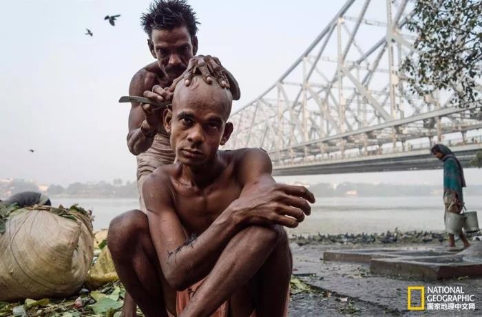 印度 | 剃发仪式是印度教最著名的传统之一,家人去世后,人们就会去剃发。这个仪式象征着灵魂和肉体的净化,死者的家属将肩负起死者留下的责任。上图中的男子正在为他的母亲哀悼。