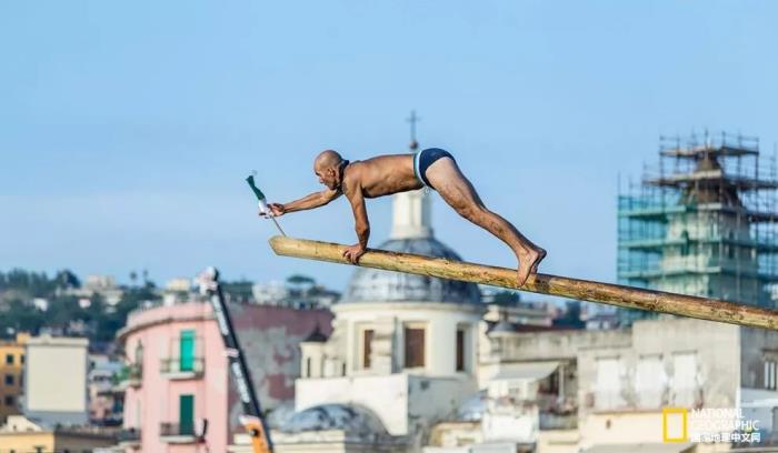 意大利 | 每年8月的某一天,波佐利人会上演一场比赛,看看谁能从杆子上取下最多的旗帜。这可不是一件容易的事情,杆子上涂过肥皂,非常滑,而且杆子都悬在海面上方。