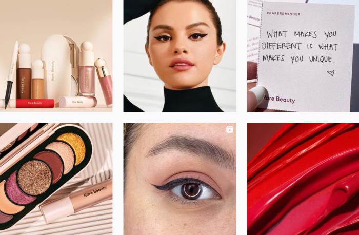 Top 8:美国流行歌手 Selena Gomez 创立的 Rare Beauty,销售额为4330 万英镑(约合人民币3.87亿元),Instagram 上粉丝数为250万人。
