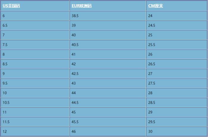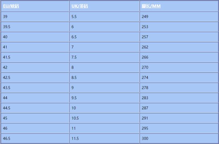 男士运动鞋尺码