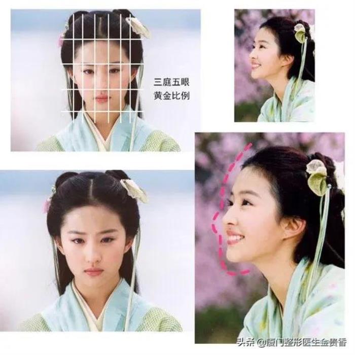 刘亦菲的骨相非常标准。顶骨、枕骨和额骨都很饱满,颅骨几乎是正圆。颅顶高头包脸,就会显得脸很小,梳任何发型都不会有发际线后移的担忧。