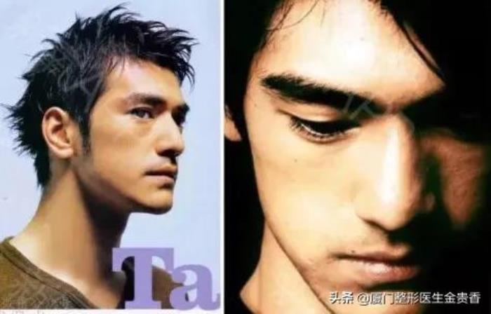 事实上,金城武的眉眼优点一是在于深邃的眼窝和隆起的眉骨这类「骨相」带来的立体感。但后天的欧式双眼皮和浓密的毛发(都属于我们上文定义的皮相),也为好看的眉眼做出了很大的贡献。