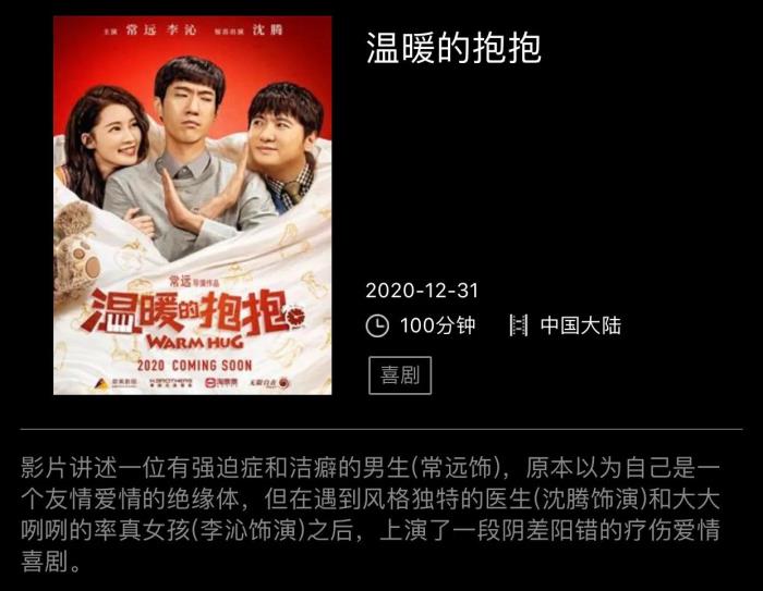 2020.12.31上映,由沈腾、李沁主演的喜剧爱情电影,非常适合跨年观看哟!
