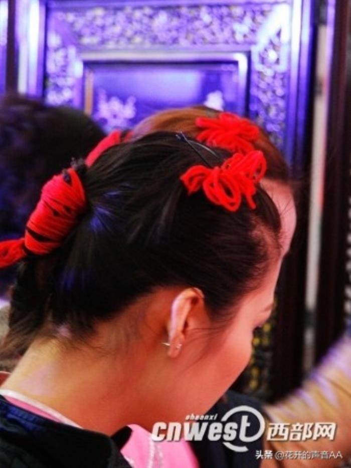 红头绳,其实就是一段机制毛线,内里紧实外表蓬松。那时少女最常见的装束是梳辫子,一般是两根,左右各一。待到脸洗净头梳光,麻花状的辫子编好,便在距末端一拃处用头绳绑扎。许多时候,头绳并不长,一尺二尺的头绳那是要剪开,用一两年的,不长的头绳除了捆束头发,余下的也就能结成一个小小的蝴蝶结。就是这两个蝴蝶结,随辫子的摆动而翻飞,少女的活泼欢快麻利勤快就表现得淋漓尽致。也有的将头发收束在脑后,总结成一根辫子,同样在辫稍处用红头绳结束,那效果是一样的。若是家境较好,不吝惜一根头绳,或是逢年过节值得奢侈一回,还可以在辫根处,也就是刚开始编辫子的地方,用头绳密密束出一截,足有一拃,红彤彤的头绳与乌黑漆亮的头发相映衬,少女的纯真质朴健康活泼乃至节日的欢乐喜庆都可以一目了然。