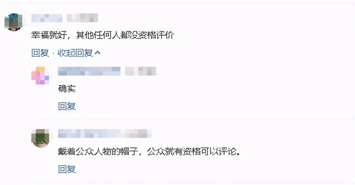 对此,有网友直接在底下留言说:“幸福就好,其他任何人都没资格评价。”