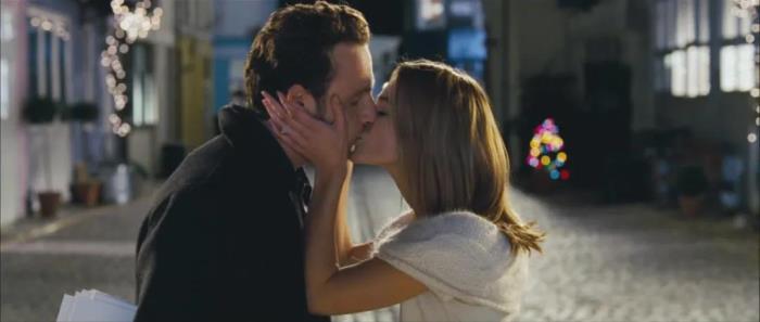 在圣诞夜,他终于勇敢的敲响她家的门,提着录音机和写着心意的纸板,俩人就站在门口,没有言语,深情的表白在纸板中翻转,在一片圣诞歌的祝福声中倾诉着。表白后他默然地离开,本以为故事会嘎然而止,谁知道新娘追了上来给他一个吻,然后转身离开。