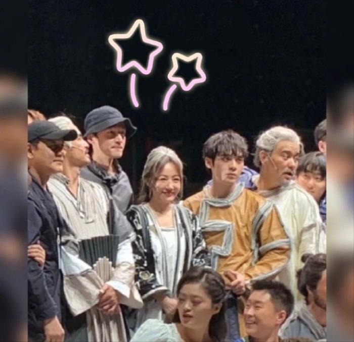 音乐剧结束后,胡歌还和薛佳凝等人一同合影。