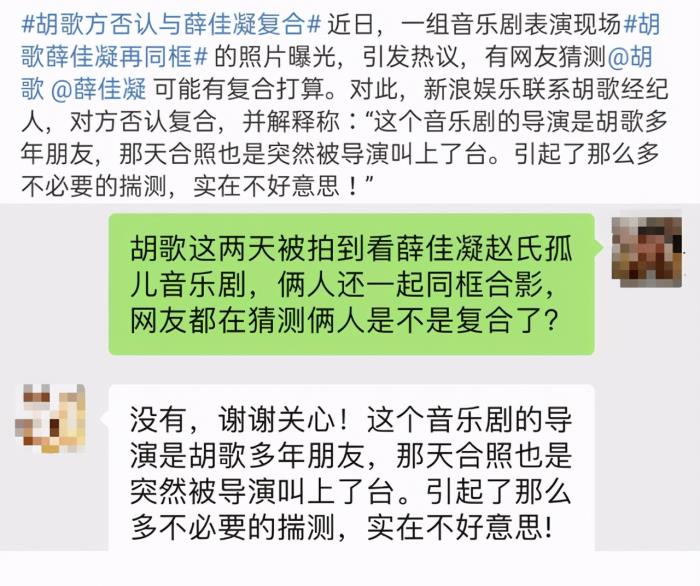 “这个音乐剧的导演是胡歌多年朋友,那天合照也是突然被导演叫上了台。引起了那么多不必要的揣测,实在不好意思!”