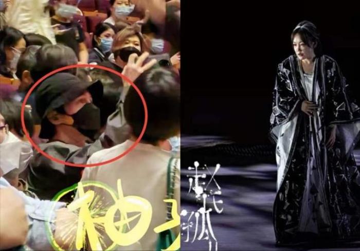 胡歌在台下,深沉地看着舞台,薛佳凝在台上,认真的表演。