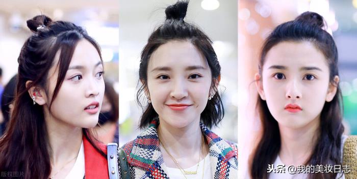 常见的丸子头,常见的无刘海造型,扎高丸子头也是不错的选择。
