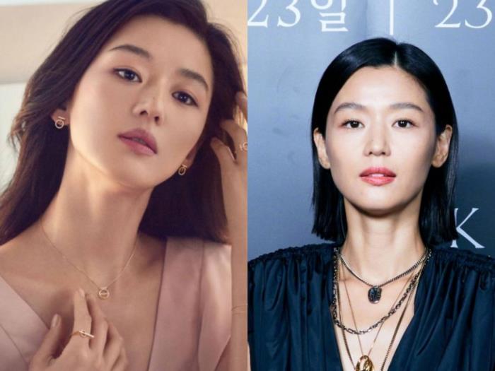 一头微卷的长发让其五官更加柔和,突显温柔气质,而利落的短发则为全智贤增添几分“大女人”的成熟色彩,整个人气场加强。