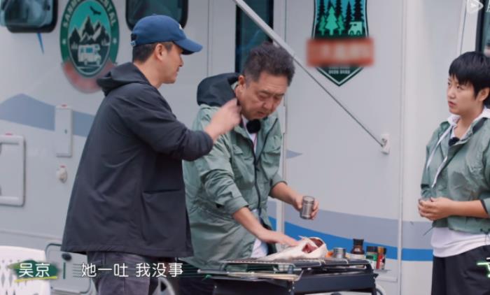 第5个细节,谢楠坐渔船重心不稳,吴京立刻让妻子扶住栏杆。看到妻子呕吐,吴京立刻安抚,还拿出水给妻子。