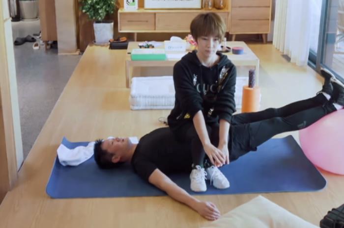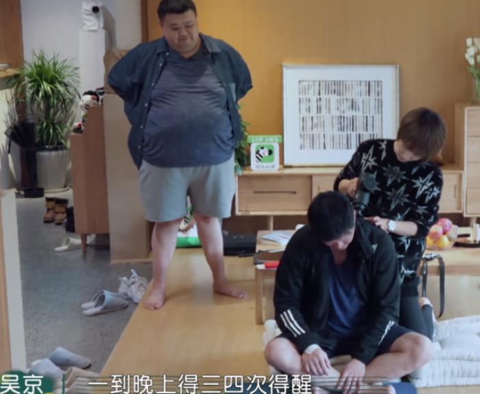 吴京在节目中一大早就起床健身,每天早上都要喝药。吴京还让谢楠用脚踩自己的后背,还让谢楠坐在自己的肚子上,这些都是在修复身体。