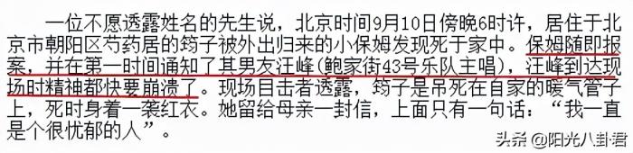 高晓松没有指名道姓,但当时有另一媒体在报道的时候,指知情人透露保姆在报警时,第一时间通知了汪峰到场,并称其是筠子男友。
