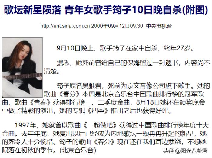 2000年9月10日,不堪抑郁困扰的筠子身穿一袭红衣在家上吊身亡,结束了自己的生命,年仅27岁。