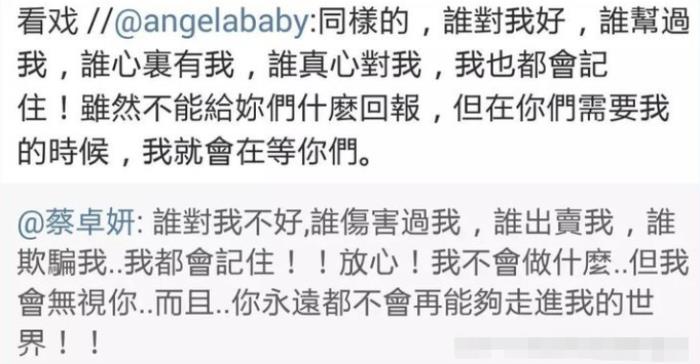 2009年年底杨颖在自己的账号发文称:“该失去的始终都会失去”。像是在暗示与陈伟霆恋情结束。只是不久后便被拍到参加黄晓明的生日宴,但是在网上她和蔡卓妍像是杠上了一样,就连陈伟霆与蔡卓妍宣布恋情,她都会出来质问,不过在她质问的同时,甚至不忘去黄晓明剧组探班。