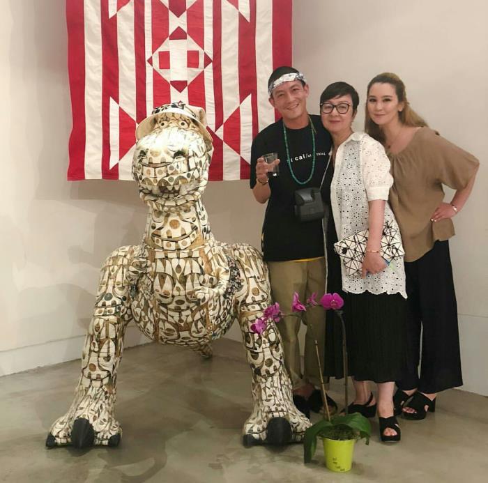 陈冠希的母亲染了金色头发,戴着红色墨镜,衬衫是荷叶领,提着名牌包包,脚上穿的是陈冠希品牌新出的运动鞋,虽然有点儿混搭的感觉,但是老太太依然潮范儿十足,微笑时的状态也很慈爱。