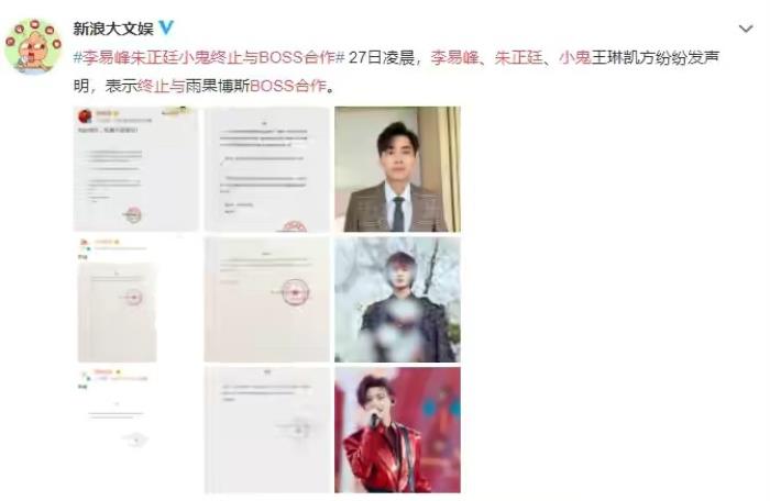当时我国的朱正廷、小鬼等多名艺人,