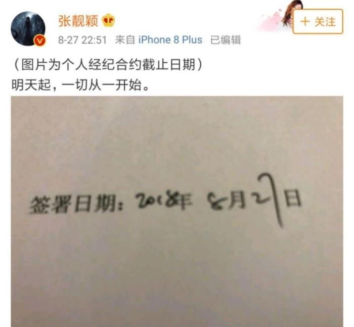 不仅如此,张靓颖还在配文中,表示到自己的一切都将重新开始。