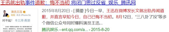 出轨事件被曝出来后,王迅发文道歉,承认婚内出轨,他的风评跌到谷底。