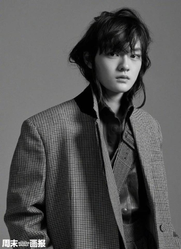她的五官气质有一种少年气,除了少女路线还很适合男孩风穿搭,清澈冷峻性别模糊的模样,不失为另一种撩人的姿态。