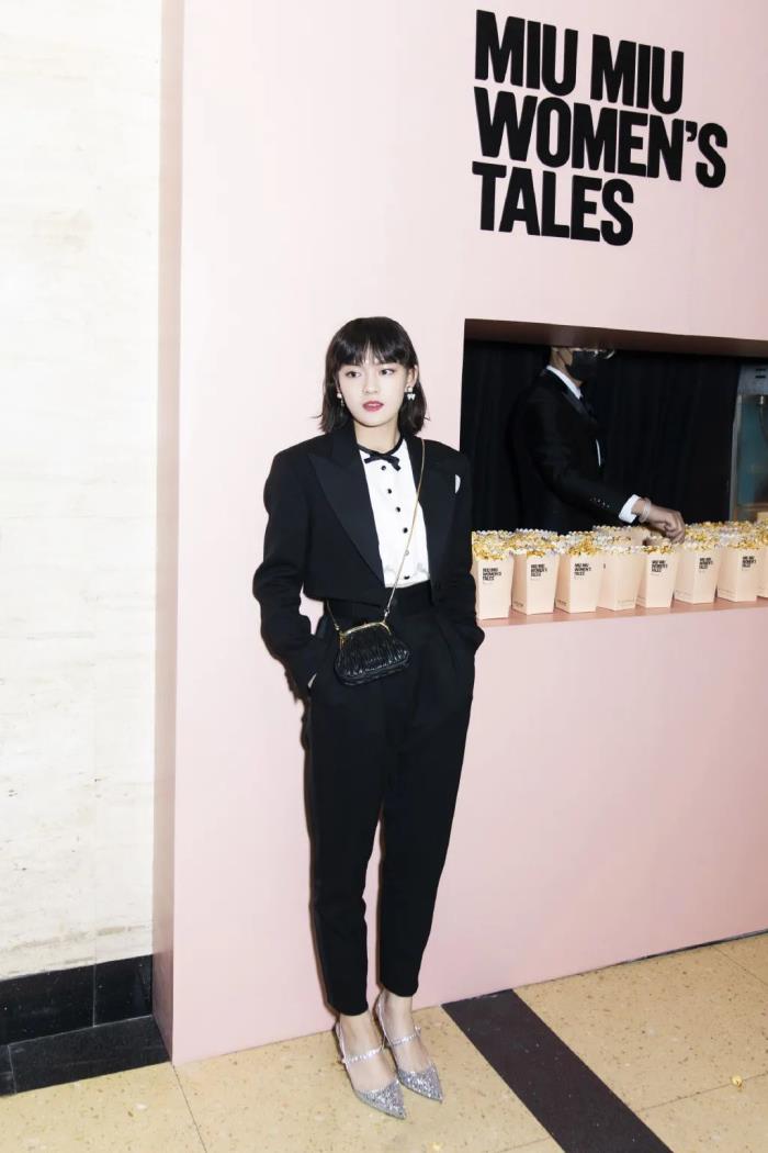 亮色裙装的西服套装明显更适合她,复古少女又不失力量感。