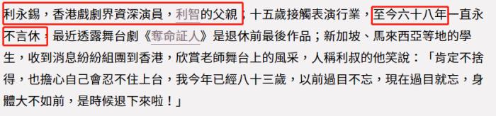 2018年,利永锡参与退休前的最后一部舞台剧,与影后刘嘉玲大演对手戏,气场一点不输对方。