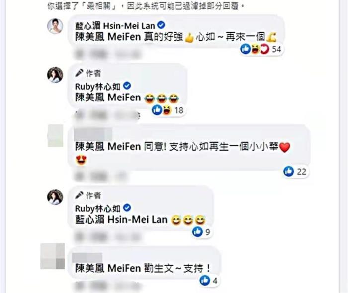 不仅陈美凤和蓝心湄这两位好友在催生,不少网友看到之后也跟着表示支持林心如再生一个。