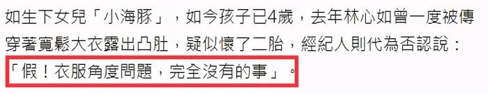 如此甜蜜的两人也经常被传出生二胎,2020年林心如数次被拍到衣着宽松、肚子凸起疑似怀孕,当时经纪人代替林心如回应道:“假!衣服角度的问题,完全没有的事”。