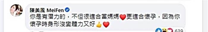 陈美凤直接在评论区爆料了林心如怀孕期间的秘辛:“你是有潜力的,不但很适合当妈妈,更适合怀孕,因为你怀孕时身形没变体力又好”。