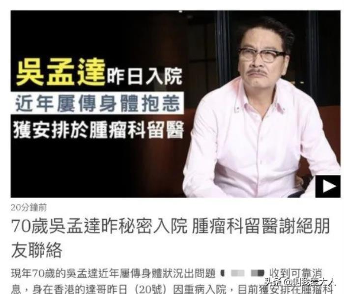 2月21日,港媒报道,年近七十的吴孟达在20日秘密住院,正在香港某肿瘤医院接受治疗。