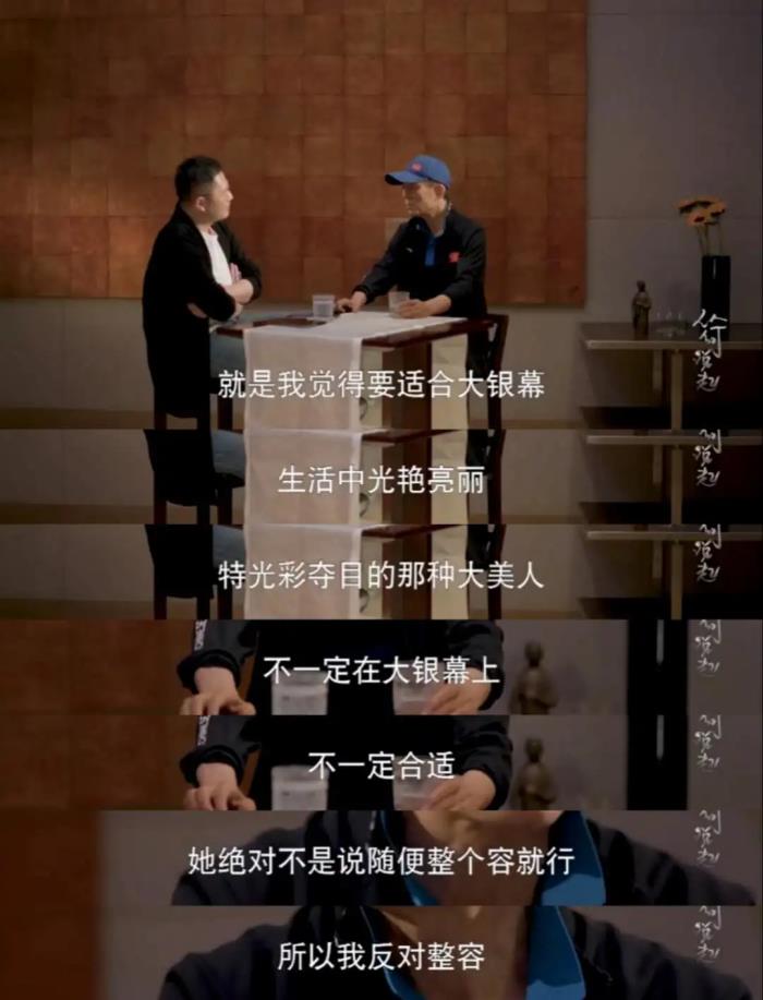 其次是他对于电影演员长相的看法也很独到:日常的大美人其实不一定都扛得住电影屏幕上放大无数倍的脸。这也是他要求自己电影的演员不能是整容脸的原因。毕竟整了容,总归是不那么自然,很多情感不能表达到极致。