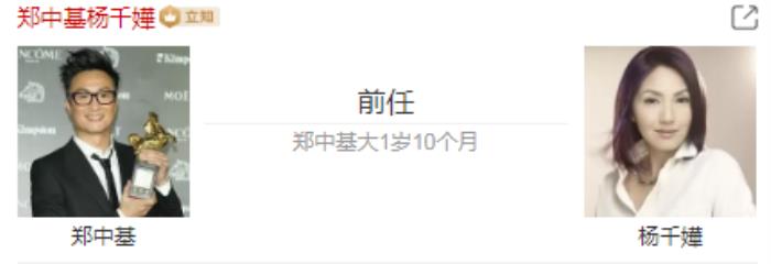 杨千嬅小郑中基1岁10个月,而且他们的相遇是在1999年郑中基上了杨千嬅的广播节目,当时他就对杨千嬅一见钟情,并且展开追求。