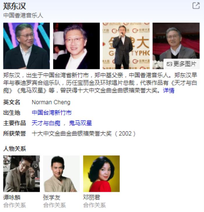 其中郑中基的外号就叫“太子爷”,之所以这么叫他就是因为他的爸爸是非常有名的音乐人,捧红了很多明星,也有一个“华语教父”的称号。